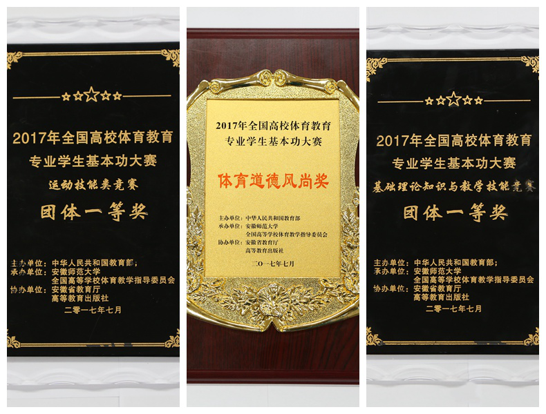 2017年6月28日至7月3日,由中华人民共和国教育部主办,安徽师范大学、全国高等学校体育教学指导委员会承办的全国高校体育教育专业员工基本功大赛在安徽师范大学顺利举行。此次比赛,由教育部抽取贵州师范大学、吉林师范大学、山西大同大学等23所高校参赛,并在每所高校中随机抽取8名(2女6男)员工,总计184名员工参加比赛。70net永乐高代表队分别荣获团体一等奖、运动技能类竞赛团体一等奖、基础理论知识与教学技能竞赛团体一等奖。