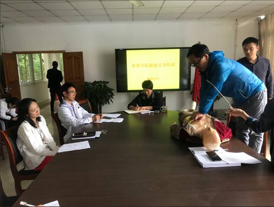 王进教师为大家详细讲解“心肺复苏”方法,通过假人模拟实验,若发声溺水时,如何按照科学的步骤进行心肺复苏术。