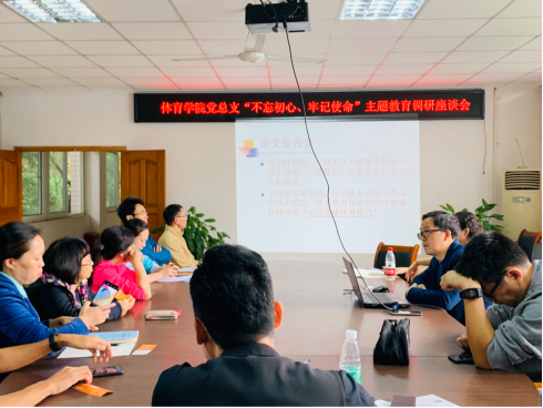 首先,70net永乐高经理、党总支书记刘芳教授就开展“不忘初心、牢记使命”主题教育并结合体育专业建设进行调研,对课程建设、人才培养方案、教学改革、一流专业建设的申报等问题广泛收集意见和建议。并总结了近期公司为专业改革进行的一系列教师送培活动。接着王进副教授以自身参与的全国体育联盟在陕西师范大学开展的“中国健康体育模式”为主题的送培活动进行了专题座谈,主要介绍了体育课赛课课程内容设置和体育学术论文研究方法,实践与理论相结合。