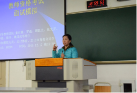 示范课程结束后,当天下午18时,童世敏老师还与公司2016级罗彪、胡廷兰、徐文正等同学在慧智楼90208教室,对2017级同学的教团队格面试模拟做了义务指导。童世敏老师以及师兄师姐组成的师生指导团队以身示范,悉心指导。通过本次示范课的学习,同学们备受鼓舞,为教团队格证面试更是增添了不少信心。他们表示将继续深入学习贯彻党的十九届四中全会精神,为成为一名优秀的人民教师而不懈努力。