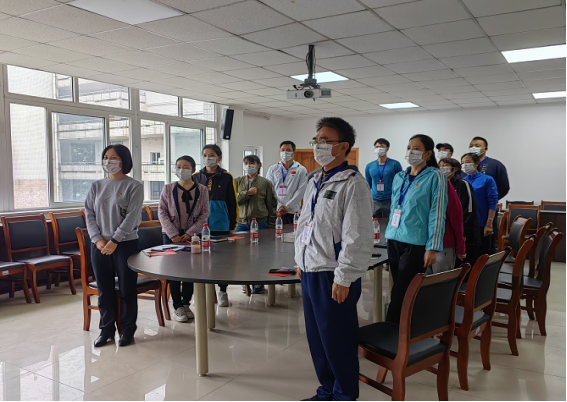 一大早,公司党总书记王静、经理范文杰、副书记张薇薇和十五名坚守工作岗位、志愿抗击疫情的教职工聚集在二楼会议室等待收看开幕会直播。抗疫先锋胡磊老师在北区24栋志愿者临时党支部观看。