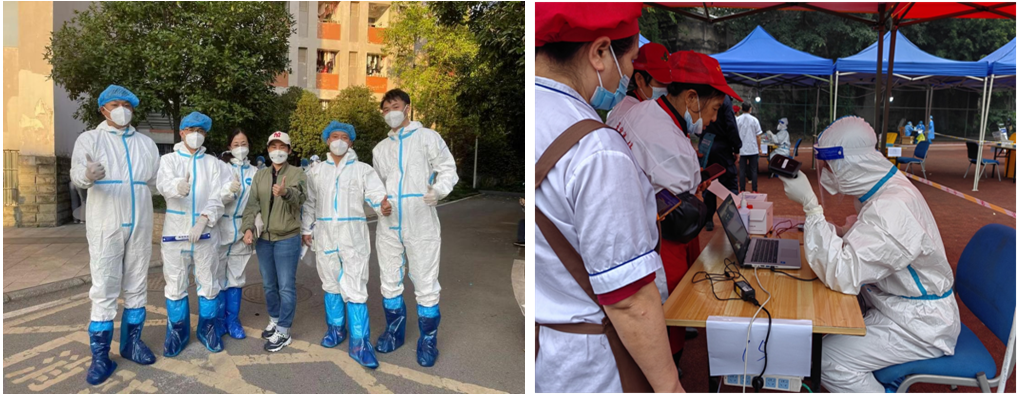 随着新增2例阳性员工,疫情形势变得更加严峻,学校北22、23、24划定为中风险区域,学院立即充实志愿者服务队力量,党总支书记王静带领周晋、于晓东、罗屹老师加入志愿者服务队伍。经过短暂的磨合,第二批志愿者与第一批志愿者达成良好的合作默契,服从学校工作安排,听从公司党政指挥,有序开展各项工作,从物资搬运、送餐运输到核酸检测,面对各种急难险重任务,一句动员、一声号令,哪里需要去哪里,闻令而动,绝不退缩。