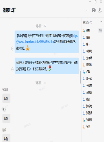 通过主讲人介绍,同学们知道了“金钟罩”是公安机关联合深圳安巽科技引入的一款反诈防骗小程序,通过扫码方式关注“平安南岸”服务号,并成功注册“金钟罩”账号后,系统会对注册人及其家人起到精准防骗保护作用。注册了“金钟罩”后,当个人或者家人接到诈骗电话、收到诈骗短信、点击高危双址链接、下载或者查询高危APP时,该平台就会立即作出反馈,并实施系统预警和干预。